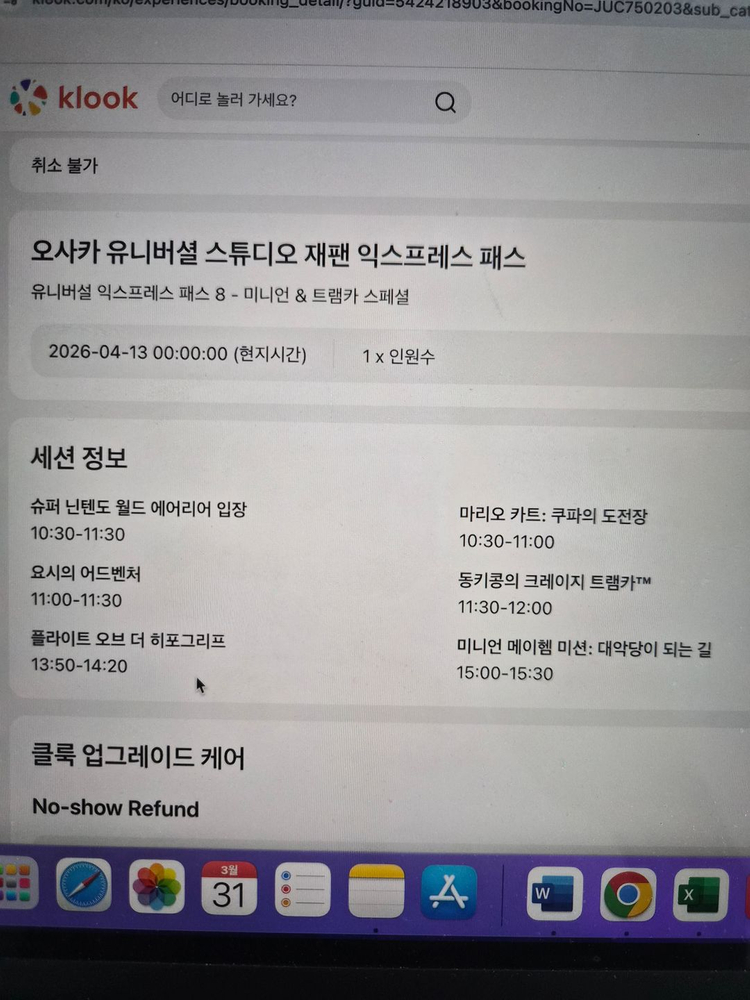 유니버셜 스튜디오 재팬 익스프레스 패스입니다! 티켓은 한장입니다! 2026년 4월 13일 사용 가능하며, 슈퍼 닌텐도 월드 에어리어 입장 마리오 카트 요시 어드벤처 동키콩 크레이지 트롤리 플라이트 오브 더 히포그리프 미니언 메이헴 이용 가능합니다!! 시간대 미지정으로는 해리포터 앤 더 포비든 저니 플라잉 다이너소어 또는 미니언 메이헴 택1 (메이헴 선택하면 시간 정해져있음-3시) 죠스 또는 쥬라기 공원 택1 이렇게 가능합니다! 입금 확인후 바우처 전달 드리며 환불은 불가합니다! 시간대 미리 확인해주세요!