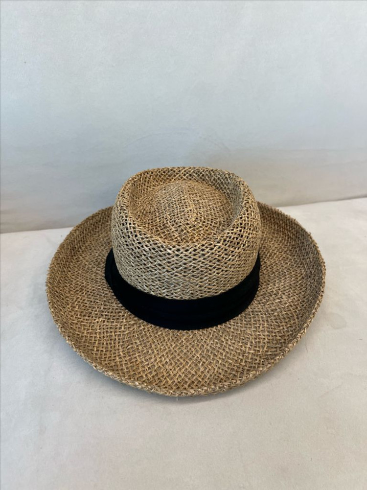 밀짚 페도라 햇 블랙 리본 장식 모자