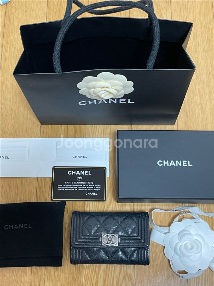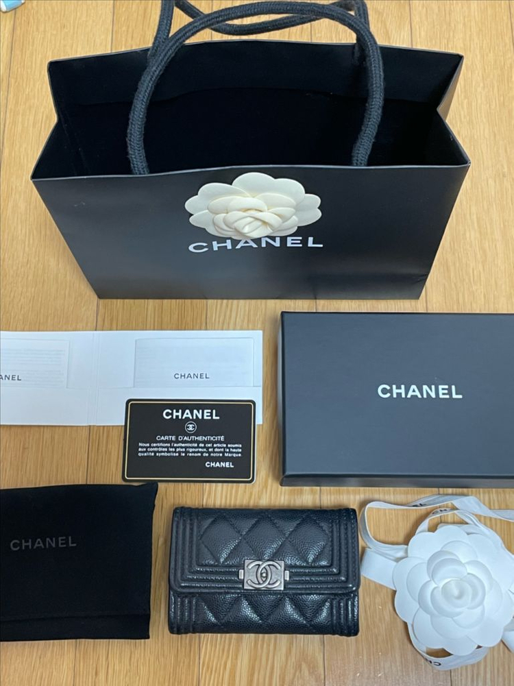 샤넬 보이 카드지갑 (블랙/캐비어/엔틱은장) A80603 라끄메라는 곳을 통해서 구매. 내부에 MADE IN FRANCE라고 각인되어 있음 가끔씩 사용해서 자연스러운 생활감, 눈에 띄는 하자 같은거 없고 깔끔하게 관리 된 컨디션 깨끗하고 상태 좋아요 30번대 상품, 내장칩 있습니다(시리얼 카드 번호 일치) *사진 잘 봐주세요* 처음 받았던 그대로 종이백, 박스, 더스트백, 끈, 제품설명서, 정품 시리얼카드 다 동봉해서 보내드립니다. 구매하실분은 채팅주세요 택배거래만 가능. (바로 우체국택배로 발송해드려요)