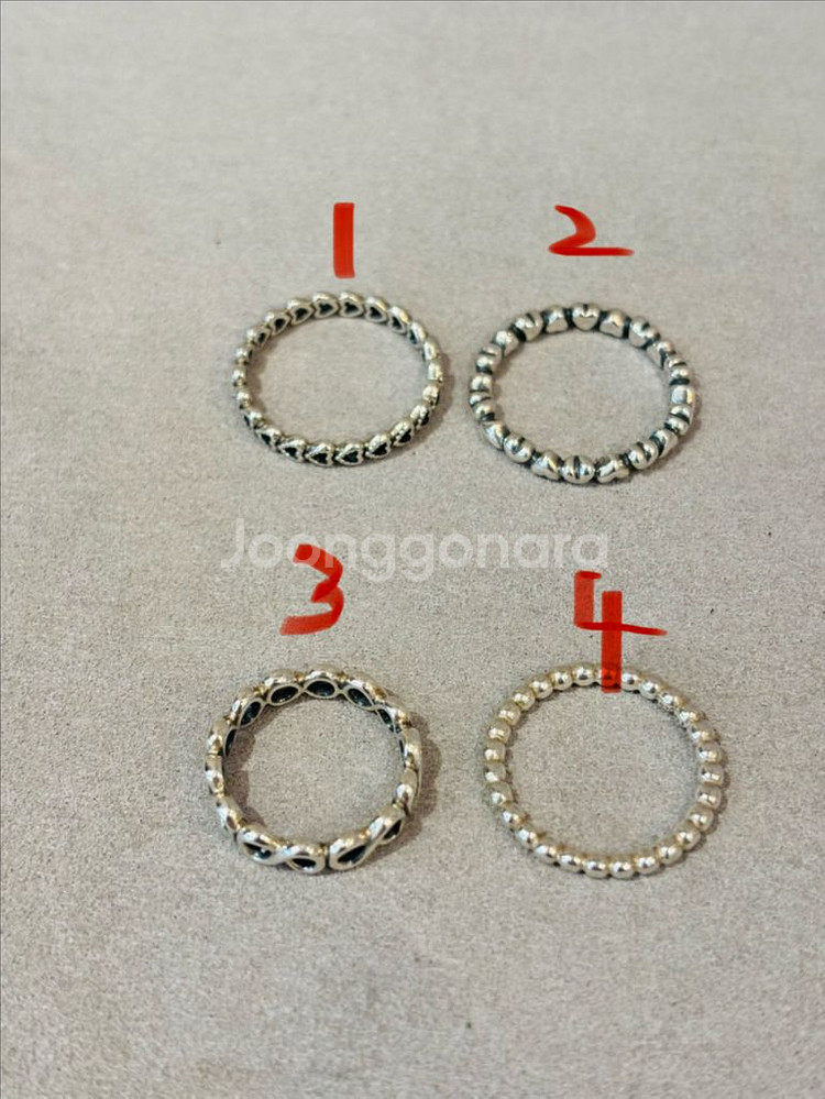 판도라 925실버 은반지 입니다 1. 58호 2. 56호 판매완료 3. 48호 4. 52호 개별가격입니다 무보정 사진이므로 상세 사진을 확인바랍니다. 실버제품은 세척후 발송드리며 은광택천 서비스로 같이 보내드립니다 Imported from England Size : 무게 : Color : 실버 - 빈티지 제품은 특성상 사용감, 스크래치 등이 존재하며 이러한 경우 사진과 함께 최대한 자세히 설명을 하도록 노력하고 있습니다. - 새상품이 아니므로 초기 불량 이외에는 A/S, 교환, 환불이 어려우니 궁금한 점은 톡으로 문의주시고 구매바랍니다. - 택배 또는 매장 방문하셔서 구입가능합니다 (서울 광진구 광장로75-1, 1층 유로빈티지)