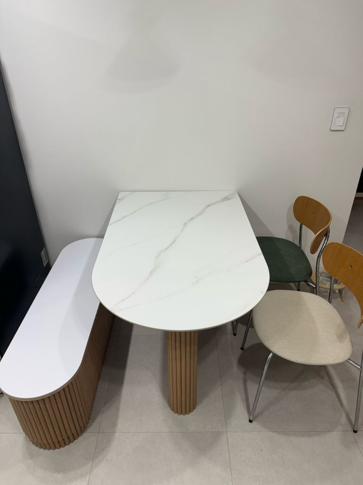 뮤즈 4인용 세라믹 식탁, 벤치, 의자 세트입니다 - 식탁 상판은 세라믹, 다리는 템바보드 디자인입니다 - 벤치는 니케 HPL 벤치 1200 오크 템바보드 프레임입니다 - 식탁은 유광 세라믹/템바보드 프레임입니다 튼튼하고 디자인도 예뻐서 인테리어 효과도 좋습니다 -식탁+의자 합쳐서 판매합니다. -직접 오셔서 가져가셔야 합니다. -산지는 3년인데 실상 식탁 사용한건 5번 내외입니다 거의 거실에서 밥을 먹어서 사용을 안했습니다. -이사관계로 정리하는 품목입니다