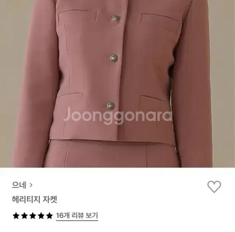 개인정보(거래정보)를 주고받는 행위는 사기에 노출될 수 있으므로 즉시 중고나라로 신고해 주세요으네드레스 헤리티지 자켓& 스커트 세트입니다 핑크 자켓 66 스커트 55 제가 55반 사이즈인데 잘 맞았어요~~^^ 자켓만 한두번 입고 보관해서 상태 최상입니다 넘 예뻐서 품고있었는데 보내봅니다 택포 8만원 채팅주세요