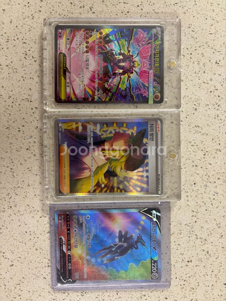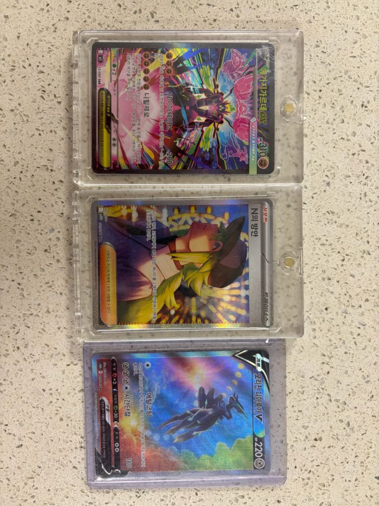 카드 하나에 4만원입니다. 상품 상태: 슬리브에 넣어 보관했습니다. (상세 사진 참고 부탁드립니다.) (배송 후 상품문제로 일정 환불 안됩니다.) 거래 방식: • 직거래: [홍대 신촌 은평구 일대] • 택배 거래: 가능합니다. • 배송 중 파손 없도록 에어캡으로 • 꼼꼼하게 포장해서 보내드려요. 별도 문의 없으시면 바로 안전결제 부탁드려요!
