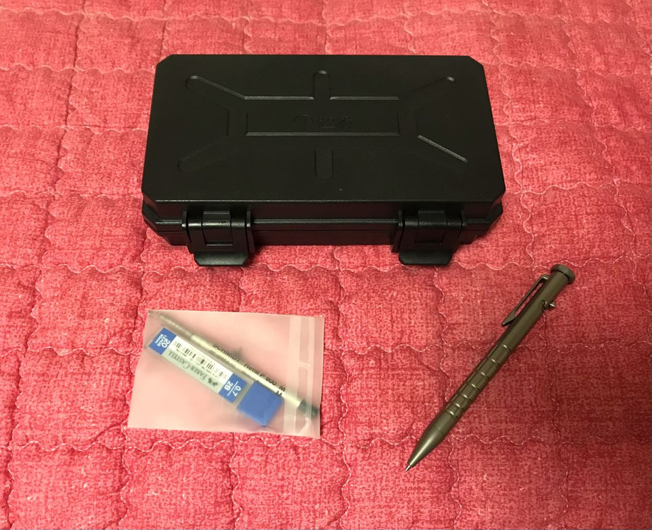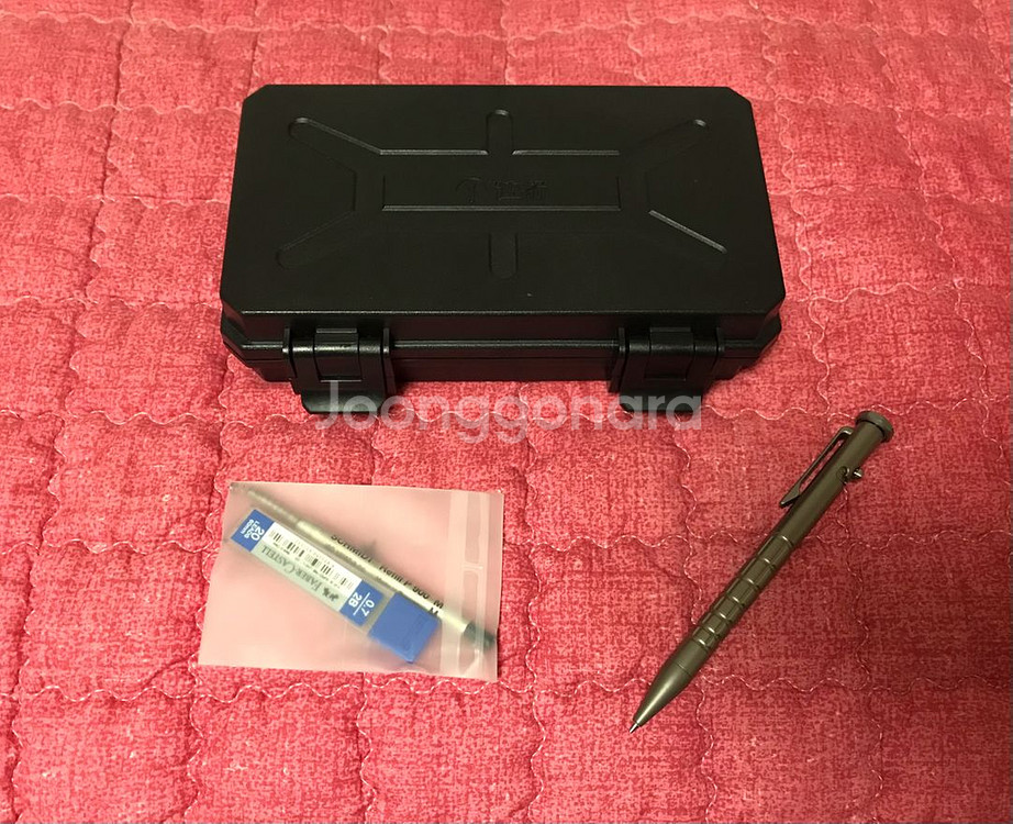 Grade 5 티타늄 합금으로 제작 된 듀얼 볼트액션 펜입니다. G2 규격 사이즈 리필심을 이용한 펜으로 사용가능하며, 독일 슈미트 DSM2007 0.7mm 메커니즘으로 교환 하여 샤프로도 사용 가능합니다. 사이즈는 약 14cm에 무게 28g 정도에 무게감이 있지만 아주 부담되는 느낌은 아닌 것 같습니다. 볼트액션이라는 손맛과 듀얼펜이라는 기본 구조 외에 캡부분은 스핀이 가능한 구조로 심심하면 스핀하며 즐길 수 있는 맛도 있습니다. 게다가 스핀캡 부분은 블랙 세라믹 볼이 장착 되어, 위급상황 시 유리 파쇄나 쿠보탄으로도 사용 가능합니다. 클립 부분은 1.5x6(mm) 사이즈의 트리튬 장착 슬롯이 있어서 원하는 색상 트리튬을 장착할 수 있습니다. 표면은 무광 블라스트 마감으로 깔끔하고 매트한 촉감입니다. 상태는 받은 그대로 극상이며, 풀구성품으로 펜과 택티컬한 하드케이스, 독일 DSM 2007 메커니즘, G2 규격 슈미트 p900 리필심 1개, 샤프심 셋트입니다. 궁금하신 점은 채팅 부탁드립니다.