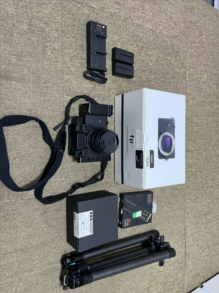 카메라 본체와 45mm F2.8 렌즈, 배터리 충전기, 여분 배터리 2개, 스트랩, 케이블 포함이에요 박스도 그대로 있어요 사진에 보이는 구성품 모두 드려요 컴팩트한 사이즈의 풀프레임 미러리스로, 작고 가벼운 바디에 시그마 특유의 감성적인 색감이 장점입니다. (세계에서 가장 작고 가벼운 풀프레임 라인으로 유명한 모델)  사진/영상 둘 다 가능한 바디이고, 외장 SSD 연결 및 시네마 DNG 촬영 지원되는 시네마 성향 카메라입니다.  케이지 포함 풀세트 + 2TB SSD 포함시 20만원 추가 국내에서 구하기 힘든 케이지입니다! 대용량 배터리 사용으로 오랜시간 영상촬영이 가능합니다