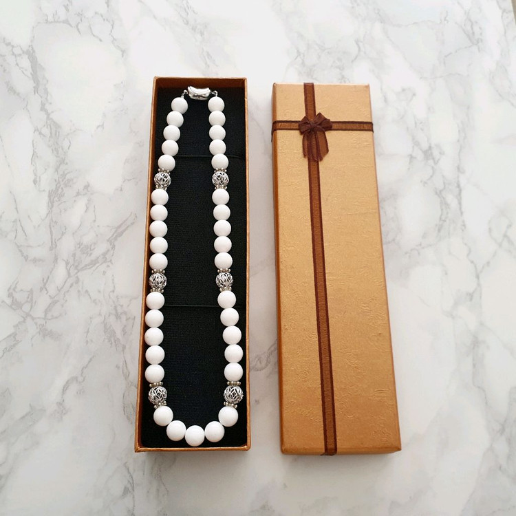 전혀 착용하지않은 새제품입니다~ 길이감이 있어 겨울 두툼한 목폴라 위에 착용하셔도 예쁘고, 여름에 셔츠입고 착용하셔도 너무 멋스러운 원석 목걸이입니다~ 케이스에 담아드리니 선물용으로도 좋습니다~ 천연원석 마산옥(백운석) 이며, 잠금장치는 금,은 아나 악세사리 소재입니다~ 목걸이 길이 약 45cm 원석굵기 약 1cm 목걸이 중량65g (원석목걸이는 무게감 있으니 중량체크 꼭 해주세요) 판매가 11만원짜리이니 저렴하게 새제품 데려가주세요~ ☆ 원석에는 내포물 및 크랙이 존재합니다 이는 자연광물의 특징이니 반품 및 환불사유가 아닙니다 ※ 판매는 입금순!! ※ 네고문의 사절!! 네고문의는 답 안드립니다 ※ 반품 및 환불 불가하니 신중한 구매부탁드립니다 ※ 택배비는 별도이며, 직거래는 찾아오시는분에 한해서 가능합니다