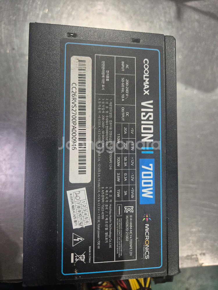 개인정보(거래정보)를 주고받는 행위는 사기에 노출될 수 있으므로 즉시 중고나라로 신고해 주세요쿨맥스 VISION II 700W 파워 서플라이 판매합니다. 수량 5개 있고 상태는 좋습니다. 택배비는 3.000원 입니다