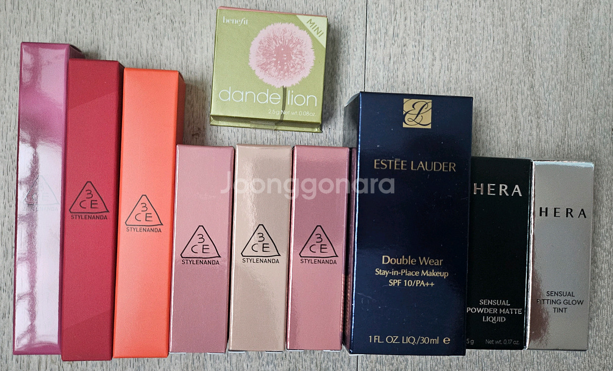 📢 미개봉 새상품 ⭕ 무료배송 ⭕ 에누리 ❌ 📢 제품 사진을 위해 상자만 개봉했습니다. ☘ 3CE 샤인 리플렉터 [ # COLDEST ] ~ 2028 . 06 . 15 ☘ 3CE 벨벳 립 틴트 플러쉬 [ #11 BEST EVER ] ~ 28 . 12 . 01 ☘ 3CE 블러 워터 틴트 [ #TANGY FEVER ] ~ 28 . 03 . 01 ☘ 3CE 글레이지 립 글로우 [ #30 MELTING SMORE ] ~ 28 . 07 . 15 ☘ 3CE 글레이지 립 글로우 [ #34 ROSE GLAZE ] ~ 28 . 10 . 27 ☘ 3CE 글레이지 립 글로우 [ #37 PASPBERRY COATED ] ~ 28 . 07 . 16 ☘ 베네피트 단델리온 [ 2.5g 미니 ] ~ 2029 . 03 ☘ 에스티로더 더블웨어 스테이인 플레이스 메이크업 [ 0N1 ALABASTER ] ~ 2028 . 07 . 01 💄 헤라 센슈얼 파우더 매트 리퀴드 [ 499 ROSY SUEDE ] ~ 2028 . 08 . 27 💄 헤라 센슈얼 피팅 글로우 틴트 [ 456 CLUELESS ] ~ 2028 . 11 . 09