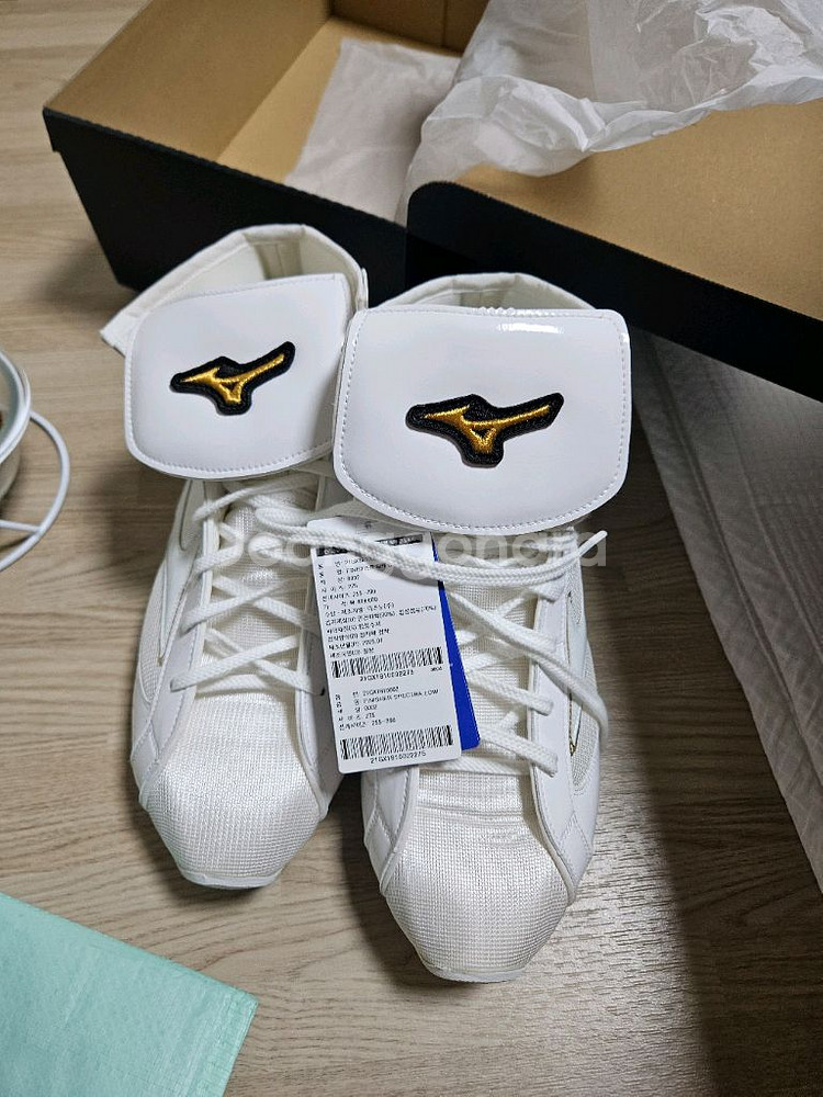미즈노복싱화 275입니다 화이트에골드색상있는이쁜제품입니다 사서한번신어보지도않은 새제품입니다 가지고있는거보다 진짜필요한분이 신고운동하셨으면해서 내놓습니다