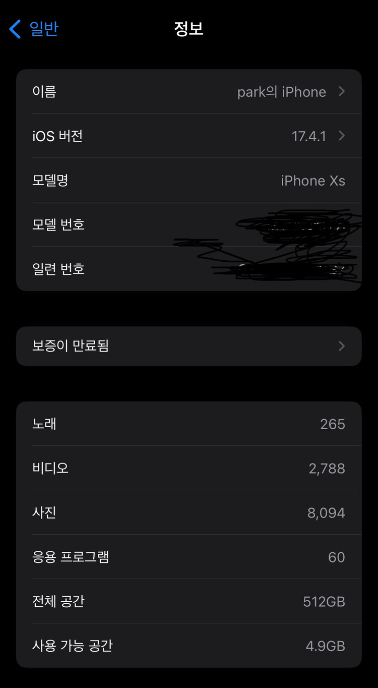 스마트폰 블랙 색상이에요. 배터리 성능 최대치 80%로 사용감은 있지만 정상 작동합니다. 실사용에는 문제없어요! 전면부 왼편에 유리깨짐 있지만 사용하는데 불편함 크게 없었습니다. 사용감 다분하긴 하지만 페이스 아이디나 카메라 등의 문제는 없어요. 잘 사용했고 기변으로 판매 합니다.