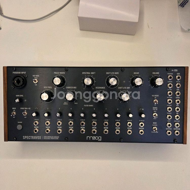 Moog Spectravox Vocoder 무그 스펙트라복스 보코더 판매합니다. 구성품은 본품, 아답터, 스티커 및 설명서, 오버레이, 제가 따로 구매한 패치케이블 입니다. 기어라운지 정품이며, 상태는 좋습니다. 직거래시 잠실이나 미사에서 가능하며, 택배거래(파손면책동의하, 택배비별도) 가능합니다.