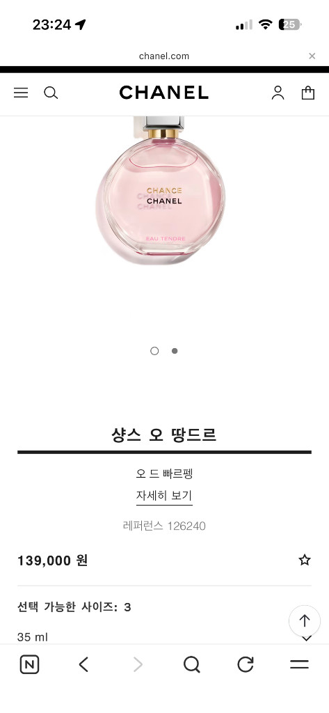 개인정보(거래정보)를 주고받는 행위는 사기에 노출될 수 있으므로 즉시 중고나라로 신고해 주세요샤넬 샹스 오 땅드르 오드뚜왈렛 35ml 판매해요 2028년 6월 5일까지 사용 가능한 제품이에요 향수 본품만 있으며, 사진에 보이는 그대로예요 정가 139,000원이에요 더현대대구매장에서 구매했어요 쿨거시 택포입니다