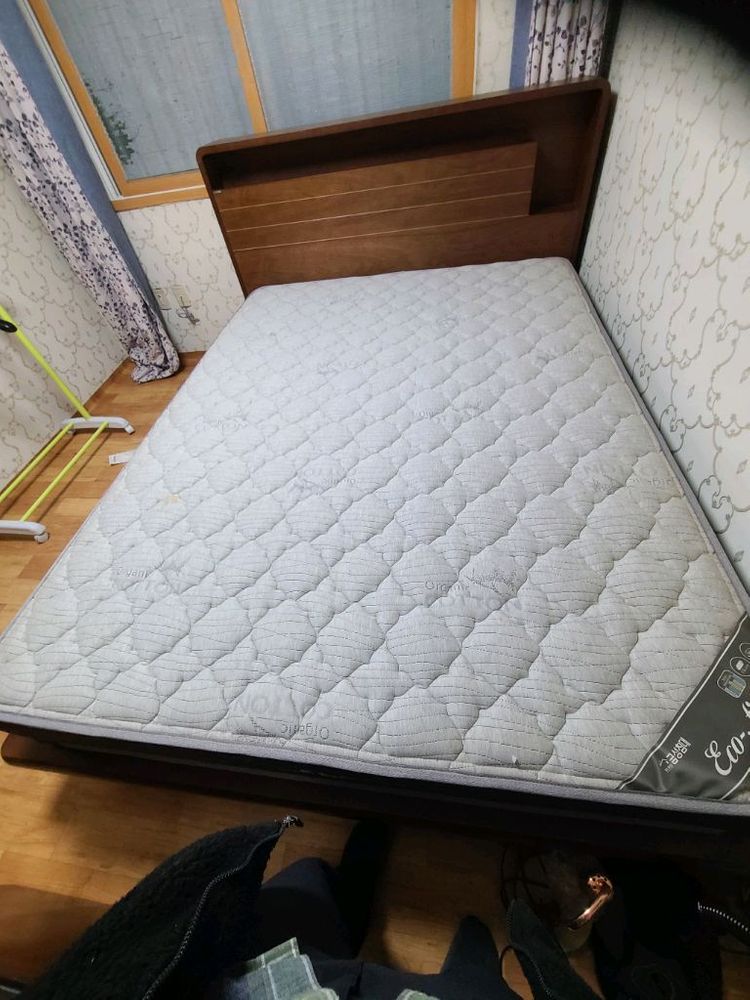 금성침대 프레임 및 매트리스 입니다 구입한지는 5~7년 사이인거 같습니다 프레임은 깨끗하게 보입니다 매트리스는 커버를 사용하지 않아 얼룩이 있습니다 커버를 사용하시길 추천드립니다 직접 분해 및 가져가셔야 합니다 엘리베이터 없는 필로티 1층 입니다(계단감안시 2층) 위치는 경기도 과천입니다 010 이삼이일 5341 연락주세요