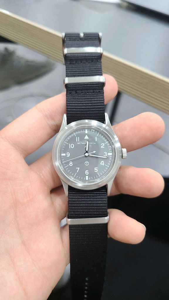 개인정보(거래정보)를 주고받는 행위는 사기에 노출될 수 있으므로 즉시 중고나라로 신고해 주세요2026년 2월 중고거래로 구매한 상품이고 2차 판매입니다. 실리언즈와 밀리타도의 협업 제품이며, 한정판입니다. 영국군 밀리터리 워치 마크 11을 오마주한 디자인이며, 회색이라는 개성 있는 다이얼을 지니고 있습니다. 쿼츠 무브먼트인 만큼 작동에 아무 이상 없습니다.