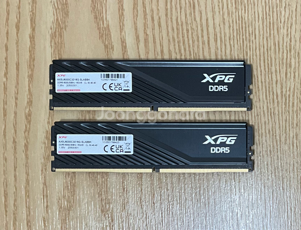 XPG DDR5 16GB 두 개, 총 32GB 팝니다. 6000MHz에 CL30으로 성능은 최상급 제품입니다. 하이닉스 칩이고 XPG 방열판이 장착되어 있어 발열 해소에도 효과적입니다.