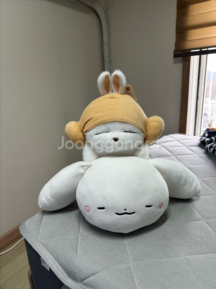 인형뽑기에서 직접 뽑은 망상리 토끼들 중형인형과 마시마로(엽기토끼)양머리 중형인형입니다 처음에는 둘이 같은 토끼라서 붙여놓았는데 마시마로가 사이즈가 작아서 위에 올려뒀더니 정말 잘 어울려서 이렇게 일괄로 판매하게 되었습니다 망상리 사이즈 : 45 x 32 x 18 마시마로 사이즈 : 24 x 23 x 23