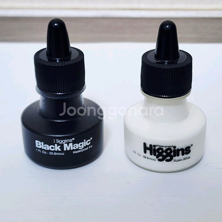 🚫타싸이트 거래 유도시 신고 🚫네고 불가, 택배비 별도입니다. 🚫택배발송시 택배박스를 구해서 보내야하니 급하신분들은 사양합니다. 🚫 직거래는 예약금 5,000원 입금 후 경기광주 삼동역 부근, 성남 모란역, 상대원시장, 분당 이매역 부근에서 직거래가능합니다. 🚫 신중히 생각하시고 사실분만 메세지 주세요. 미사용한 히긴스 잉크, 29ml입니다. 블랙하 화이트 컬러이고, 블랙은 워터 프루프 잉크예요. 병 뚜껑이 스포이드 형태로 되어있습니다. 두개 일괄 15,000원입니다.