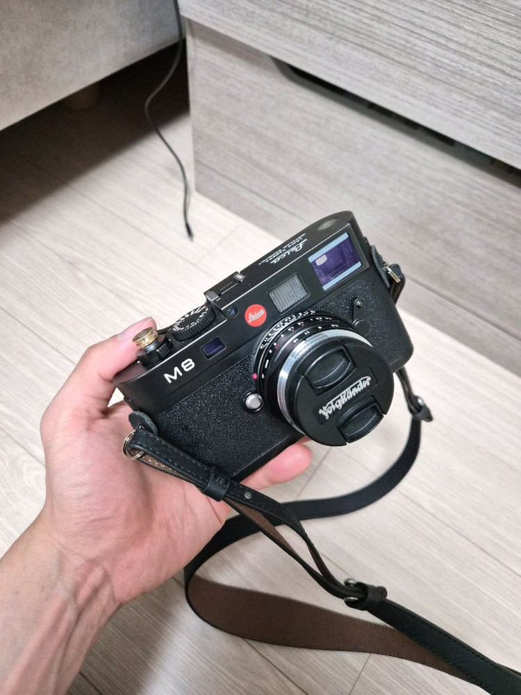 라이카 M8 Black + 보이그랜더 35mm f1.4 s.c(일괄) 1. 제품 구성 바디: 라이카 M8 블랙 (Leica M8 Black) 230만원 렌즈: 보이그랜더 녹턴 35mm f1.4 (싱글코팅) 55만원 기타: 정품 배터리, 충전기, 여분배터리1개, ir 필터, 엄지그립 일괄구매하시면 네고 가능합니다! 2. 제품 상태 바디: 외관상 자연스러운 사용감 외 큰 찍힘이나 기능상 하자 없습니다. M8 특유의 CCD 센서 색감 이상 없이 잘 나옵니다. 렌즈: 광학계 깨끗하며, 초점 링 및 조리개 조절 부드럽게 작동합니다. 특이사항: 컷수는 19000컷 가량으로 연식에비해 적은 편입니다. 데드픽셀이 M8고질병이라는데 사진에서 발견한 적은 없습니다. 3. 판매 상세 내용 희망 가격: 285만 원 (일괄 우선 판매) 거래 방식: 직거래 선호 (경기 구리,남양주) / 택배 거래 시 노리턴 조건 설명: 라이카 M바디 입문용으로 가장 추천드리는 조합입니다. M8의 진한 CCD 색감과 보이그랜더 녹턴 클래식 조합이 매우 매력적입니다. 수동 초점이 적응이 안되어서 내놓습니다ㅠ