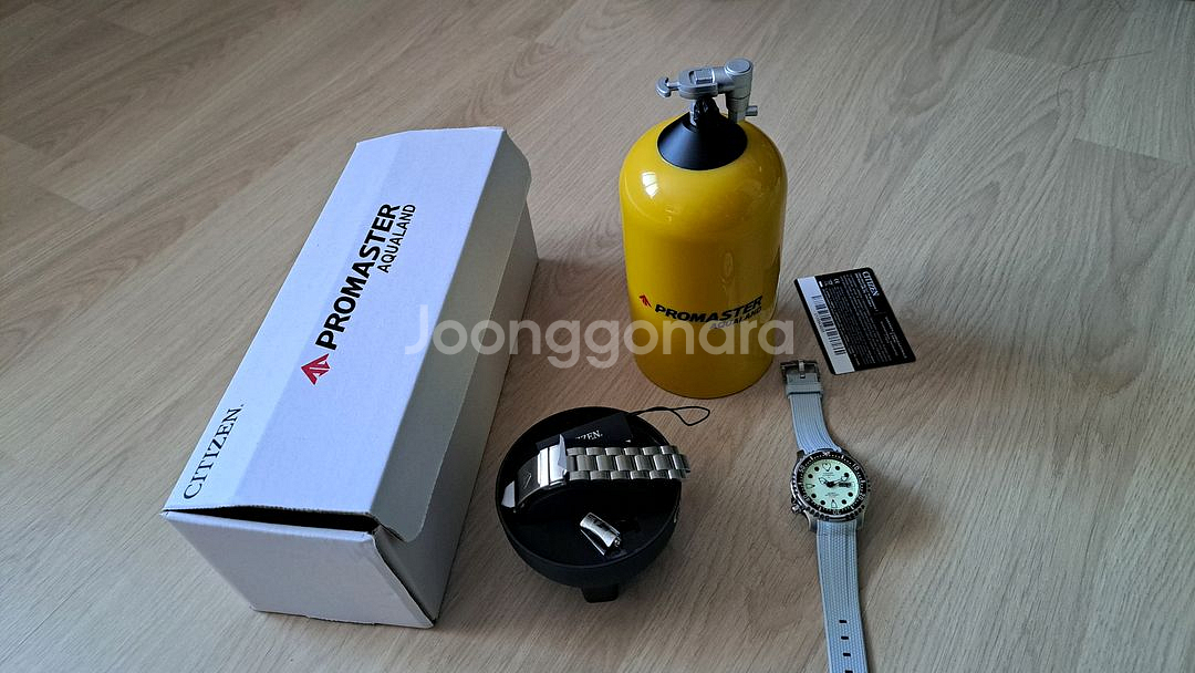 개인정보(거래정보)를 주고받는 행위는 사기에 노출될 수 있으므로 즉시 중고나라로 신고해 주세요시티즌 프로마스터 아쿠아랜드 복어 오토매틱 시계 판매합니다. 시계, 산소통 케이스, 설명서, 풀박스 구성입니다. 메탈 브레이슬릿 버전이고, 밝은 회색 러버스트랩 장착해 놓았습니다. 차고 나간 적이 거의 없어 새 제품에 가깝습니다.