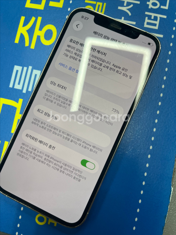 개인정보(거래정보)를 주고받는 행위는 사기에 노출될 수 있으므로 즉시 중고나라로 신고해 주세요모델명아이폰 12 프로 256GB컬러실버뒷면 파손 심해요 성능 하자는 없어요 이체 되시는분만