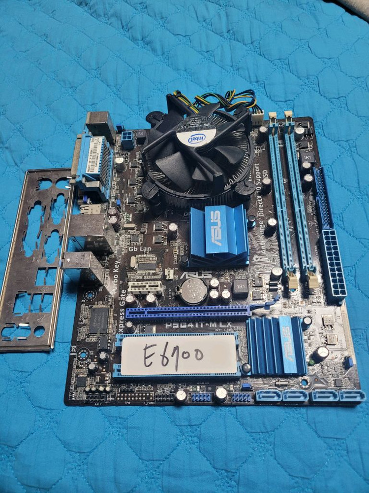Intel Pentium E6700 3.20 GHz (775소켓) + P5G41T-M LX (메모리 ddr3 지원) 메인보드에 CPU장착, 써멀재도포 후 CPU쿨러가 조립된 상태로 판매합니다 사진에 있는 구성품 전부 포함입니다 정상작동 확인 후 판매하므로 교환,환불되지않습니다 택포 15000원에 팝니다 직거래시 울산에서 가능합니다