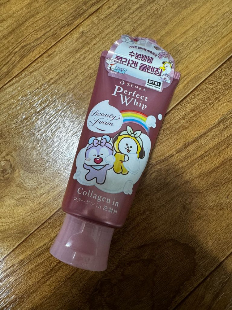 센카 퍼펙트 휩 콜라겐 인 클렌징폼 BT21 콜라보 제품이라 BT21 캐릭터가 그려져 있어요. 콜라겐 성분이 함유되어 있고, 쫀쫀한 거품으로 세안할 수 있어요 용량은 120g이고, 2027년 6월 까지 상품이에요 7000원에 팝니다 네고, 환불은 받지 않습니다!!!