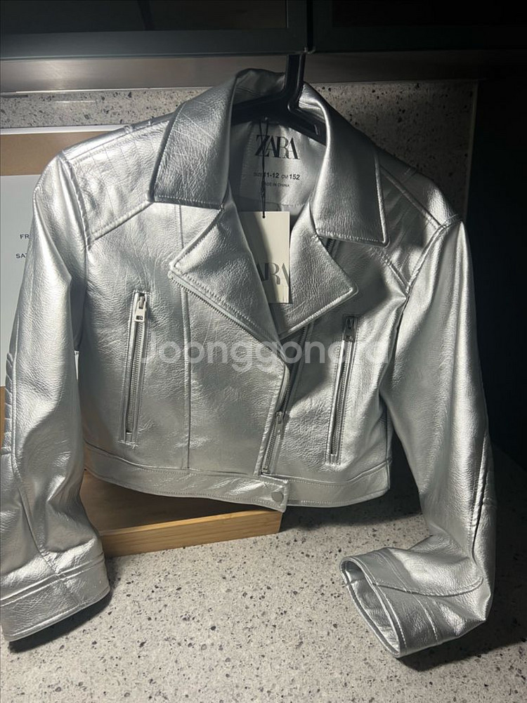ZARA의 매력적인 실버 라이더 자켓이에요. 11-12세, 152cm 사이즈로 나왔어요. 사진에서 보이는 것처럼 깔끔한 디자인이 돋보여요. 어떤 코디에도 포인트를 줄 수 있는 멋진 자켓이랍니다. 75900원 구매, 텍있는 새상품입니다.