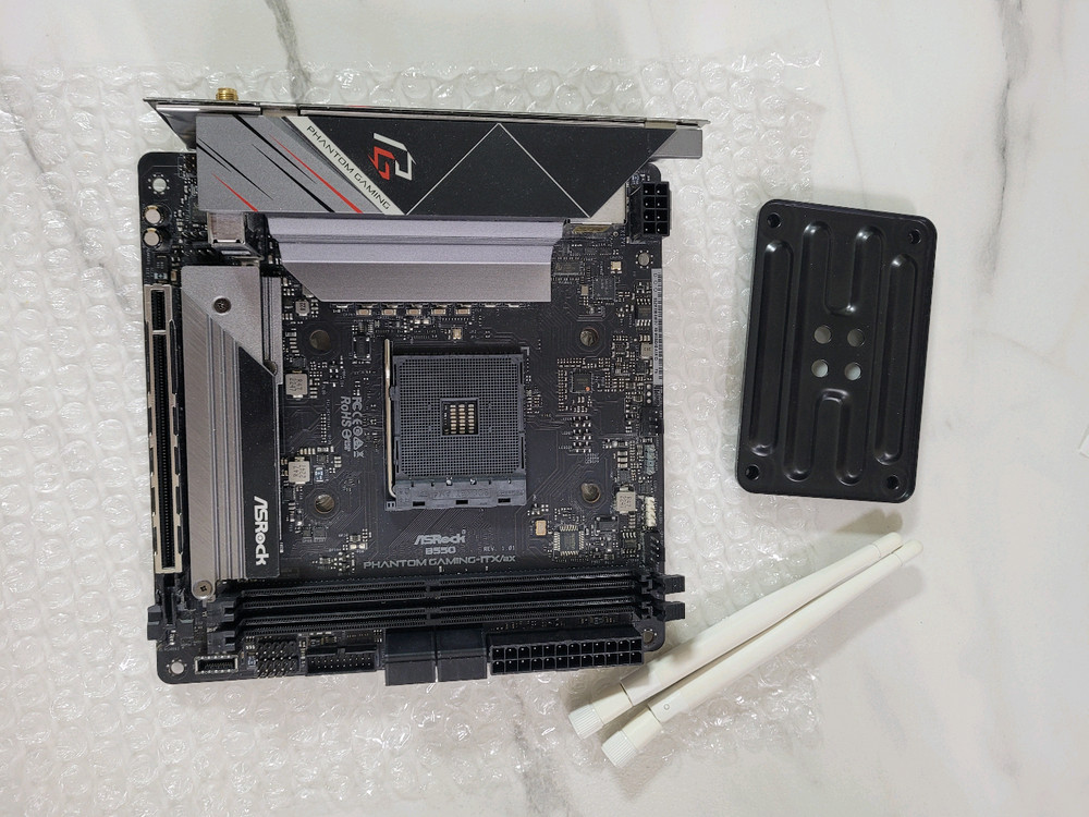 애즈락 B550 팬텀 게이밍 미니 메인보드입니다. ITX 규격이라 작은 케이스에 장착하기 용이합니다. nvme ssd 2개장착 가능하고 2번째는 뒤에 장착. wifi 안테나(순정X)랑 백플레이트 같이 드립니다. 사제쿨러 써서 순정쿨러 가이드 없고 뒷판은 있습니다. 사진에 보이는데로 갑니다. 문의 없으시면 바로 안전결제해주시면 됩니다!