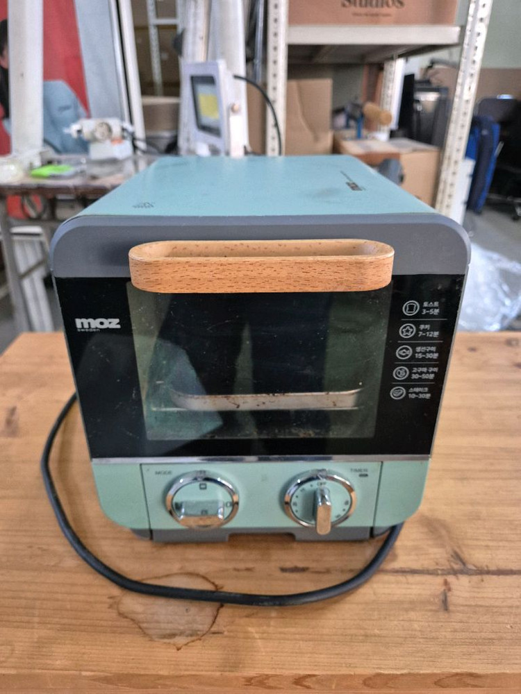 스웨덴 모즈 MOZ 미니 전기오븐 DR-1000 블루이쉬 그린 색상입니다 토스트나 냉동 피자 데우기에 좋습니다 사이즈는 22 x 26 x 25cm입니다