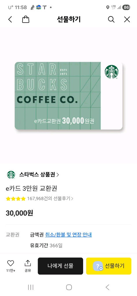 스벅3만원상품권팔아요