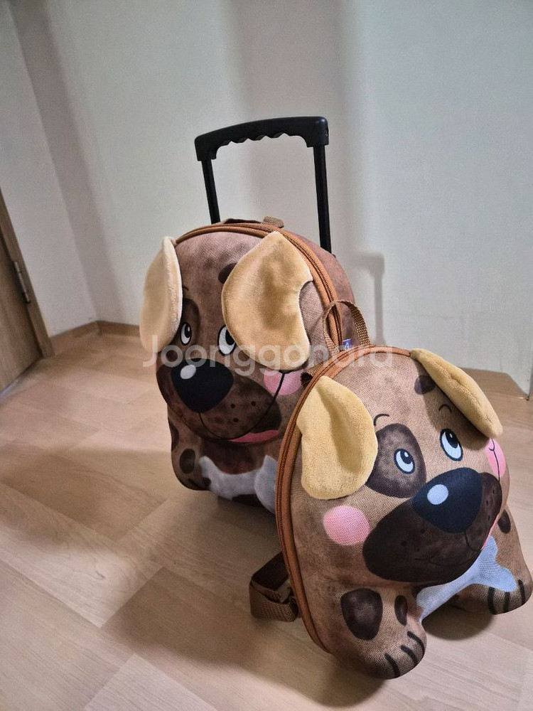 개인정보(거래정보)를 주고받는 행위는 사기에 노출될 수 있으므로 즉시 중고나라로 신고해 주세요귀여운 강아지 얼굴 모양의 캐리어와 백팩 세트예요. 아이들이 좋아할 만한 귀여운 디자인으로 여행이나 학교용으로 활용하기 좋습니다. 한번 사용해서 전체적으로 깨끗한 상태입니다.
