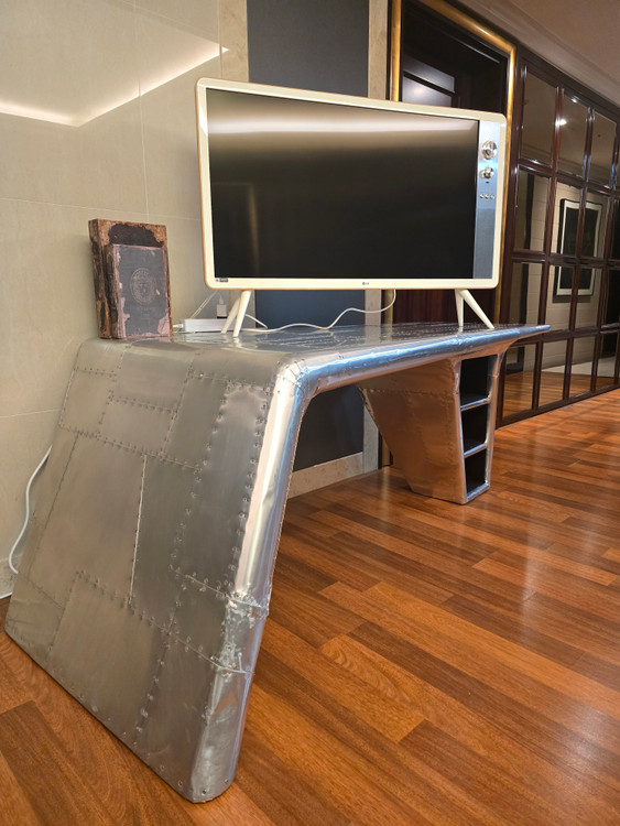 티모시울튼의 최상급 사무용가구로 독특한 발키리 디자인의 데스크예요. 항공기 소재 실버 컬러로 고급스럽고 독특한 형태가 인테리어 포인트가 되는 제품입니다. 1. 상품상태 : 첨부한 사진과 같이 약간의 스크레치와 일부 손상있음. - 인테리어나 사용에 전혀 이질감이나 거부감 없이 표시 잘 안납니다. 2. 상품무게 : 성인 4인이 들어야 할 만큼 무거운 편이라 이사짐센터/ 화물기사 등 도구 사용한 이동 추천 - 배송은 구매자가 직접 책임지고 하셔야 함. 3. 상품가치 : 티모시울튼 수입사 까사알렉시스에서 700만원 이상으로 판매하는 고급 책상입니다. 4. 상품가격 : 800,000원