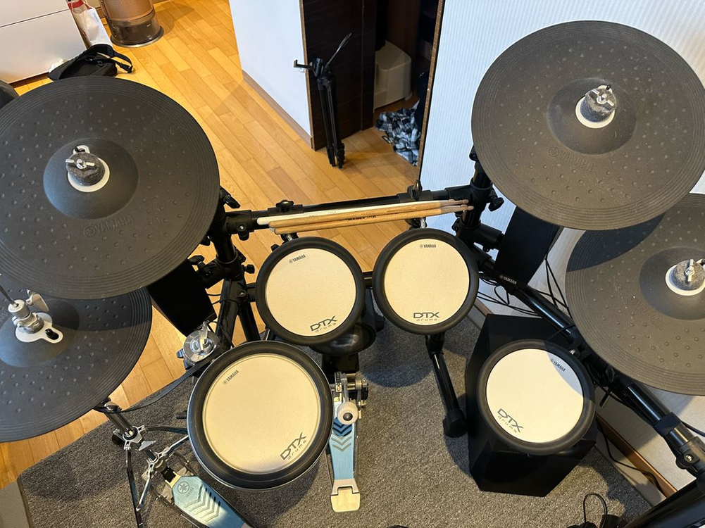 야마하 전자드럼 풀세트로 드럼패드, 심벌, 모듈러 시스템, 서브우퍼까지 모두 포함되어 있어요. 2023년에 낙원상가에서 제일 큰 드럼 매장에서 구입했습니다 야마하 공식 수입제품이에요 야마하 앰프 스피커 소음방지 매트 고급 의자까지 다해서 380정도에 구입했고 이사관계로 판매합니다 중학생 아이 연습하려고 샀는디 거의 사용하지 않아서 상태 좋습니다