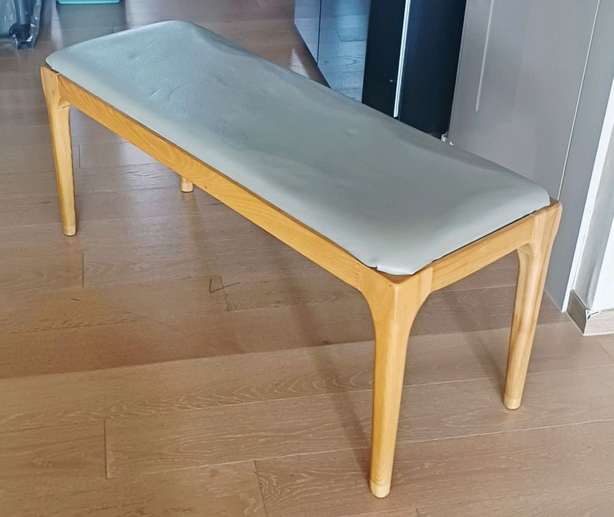 삼익가구 제품으로 원목 프레임에 쿠션이 있는 디자인으로 튼튼하며 까임이나 오염 얼룩 없어요 사진의 방석부분 고르지 못하게 보이는 것은 수제작으로 제작과정에서 그렇게 나온것으로 사용상 문제시될것은 없습니다 식탁의자2개와 같이 구입해서 벤치의자는 사실상 사용빈도가 그리 많지 않아 공간 활용차 내놓아요 신수동 무료배송 가능합니다