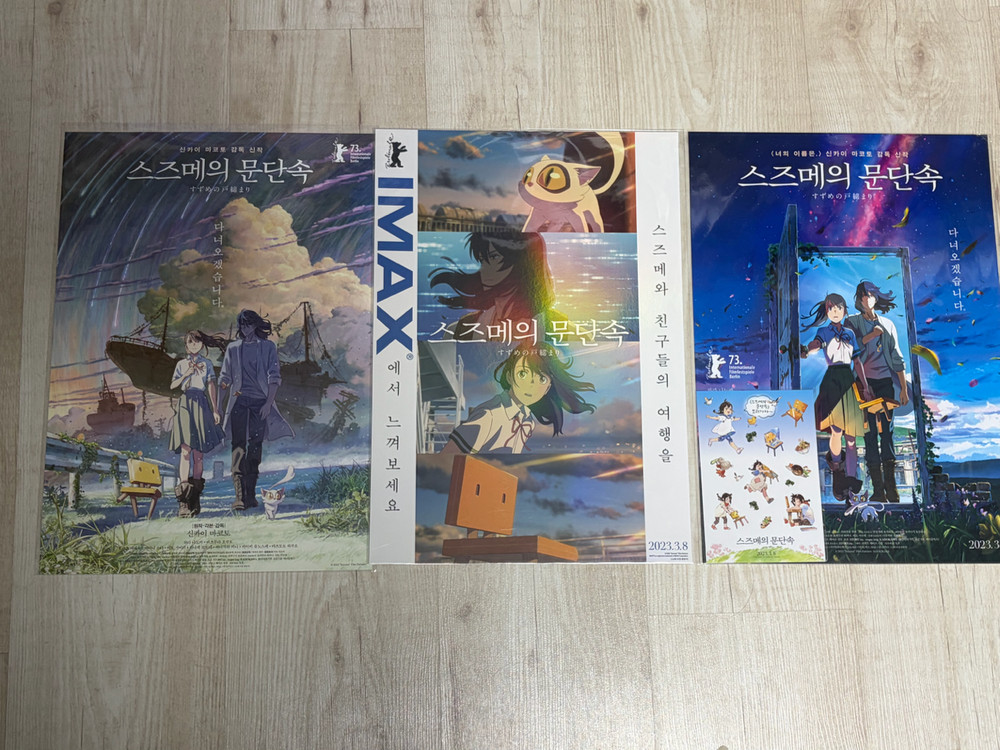 개인정보(거래정보)를 주고받는 행위는 사기에 노출될 수 있으므로 즉시 중고나라로 신고해 주세요스즈메의 문단속 아이맥스 특전 포스터 포함 3종 일괄로 판매합니다! 상태 아주 좋고 직거래는 범계역 평촌역 가능합니다 연락주세요