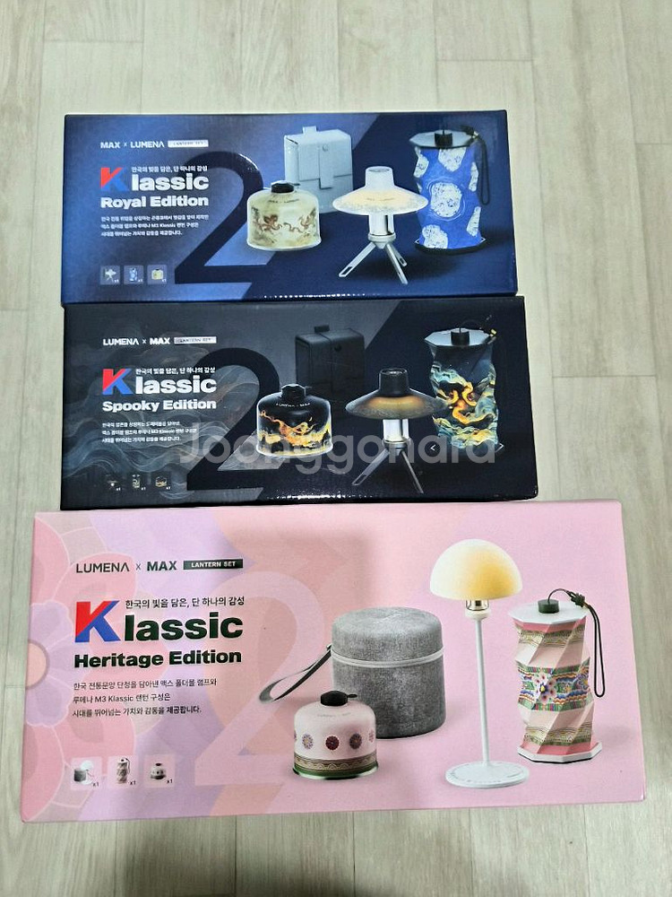 개인정보(거래정보)를 주고받는 행위는 사기에 노출될 수 있으므로 즉시 중고나라로 신고해 주세요클래식 에디션 캠핑 랜턴 3가지 입니다. 로얄 5만원 스푸키 5만원 헤리티지 8만원 3종세트 18만원입니다. 개별 구매도 가능합니다. 택비 포함이며, 이소가스는 제외입니다.