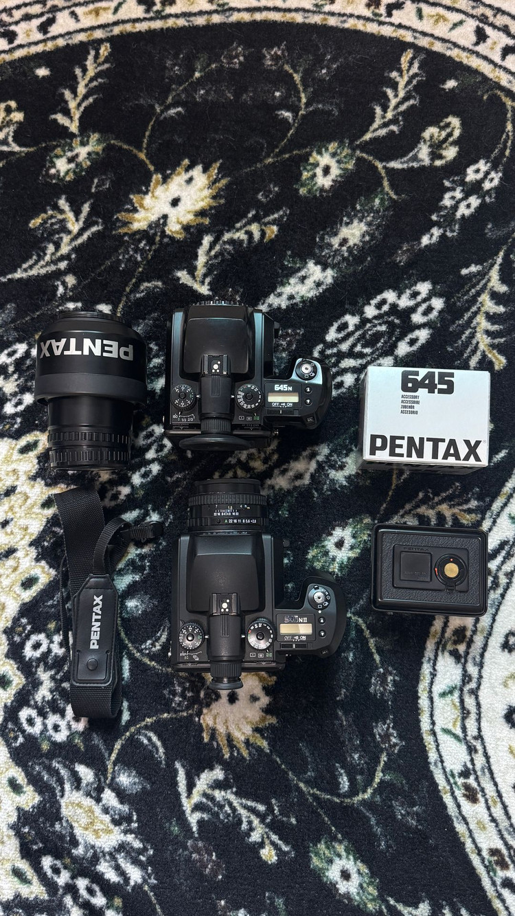 pentax 645n body -1,100,000 pentax 645n ii body - 2,200,000 펜탁스 FA645 75mm 2.8f - 600,000 펜탁스 FA645 macro 120mm F4 - 500,000 필름백 120mm - 3개 220mm - 1개 일괄 4,400,000원 에 판매 합니다. 일본에서 건너온 관리 잘된 펜탁스645n,펜탁스645n2,렌즈, 액세서리 일괄 판매 합니다. 상태는 너무 양호하고 깔끔합니다. 물량도 많이 없고 이제 구하기 쉽지 않습니다. 중형필름에 AF도 좋습니다. 택배도 가능하지만 직거래 선호 합니다.