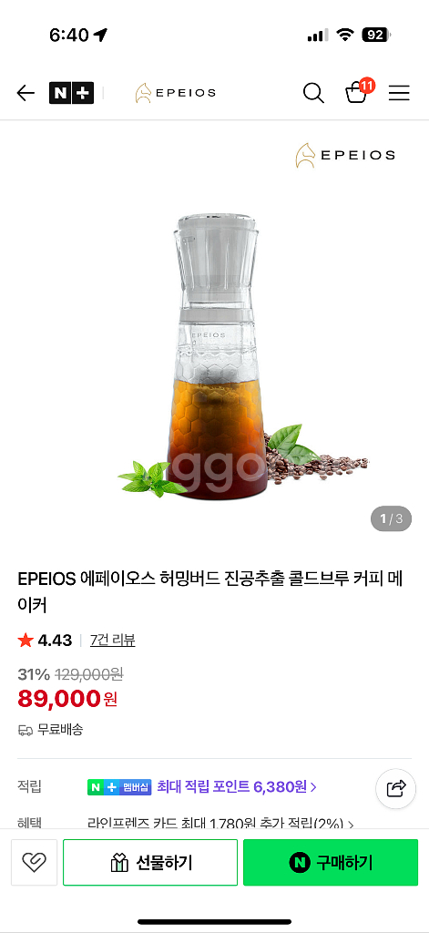 에페이오스 허밍버드 콜드브루 커피 메이커(미개봉)