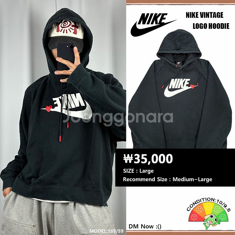 똑같은 나이키 후드티 아니다. 귀여운 하트 포인트 추가 :() <나이키 하트 빈티지 후드티> No.1483 컨디션:10/9.5 표기 사이즈:L / 추천 사이즈:M~L 실측:총장63 / 가슴69 2개 이상 구매 시 무료 배송으로 변경 :() 구매 전 공지사항을 확인해 주세요 :()