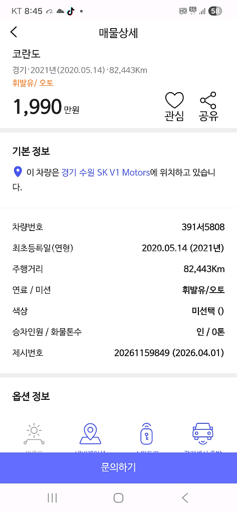 개인정보(거래정보)를 주고받는 행위는 사기에 노출될 수 있으므로 즉시 중고나라로 신고해 주세요뷰티풀코란도 1.5가솔린 C5플러스 2020년 5월 8만키로 완전무사고.누유무 2인 캠핑카 정식구변 인산철200A.주행충전기 에바스 휘발유전용 무시동히터 인버터2k 차량옵션 정품네비.하이패스 룸이러 전좌석 열선시트 운.조 통풍시트 후측방 경보기.차선이탈 오토홀드.전자파킹 스탑앤고