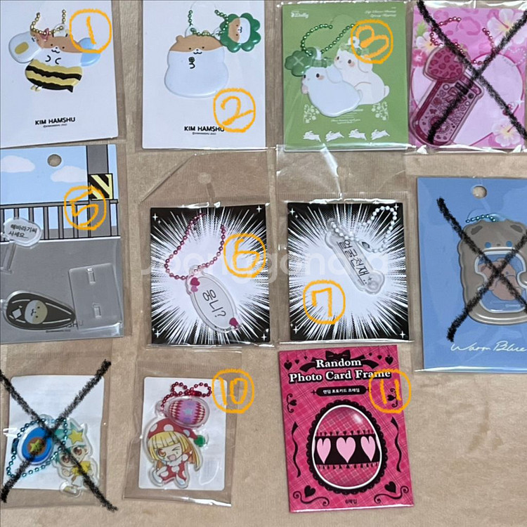 - 1~3, 14, 19번(햄슈/디어돌리 키링): 각 3000원 - 6~7, 16번(더키월드 키링): 각 4000원 - 5, 20번(햄슈 아크릴 스탠드): 각 4000원 - 10번(캐캐체 키링): 6000원 - 11번(캐캐체 포카 프레임): 4500원 - 18번(짹곰이 키링): 2500원 - 11번 캐캐체 포카 프레임은 디자인 확인을 위해 한 번 개봉했던 상품입니다(디자인은 4번째 사진 확인) - 포카 프레임 이외의 상품은 전부 미개봉 새 상품입니다 - 모두 현재 단종된 상품입니다 • 톡 보내기 전 상점 소개 필독 • 준등기(+1800), 우체국(+4000) 가능