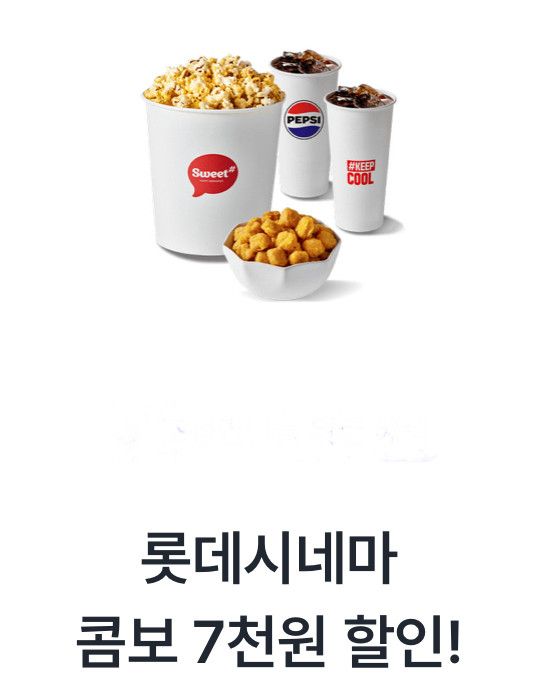 26.04.30까지입니다 채팅주세요 유의사항 1. 본 할인권은 롯데시네마 콤보메뉴 선택 시 7천원 할인적용됩니다. 2. 본 할인권은 [롯데시네마] - [MY] - [쿠폰함] - [쿠폰등록] - [할인권번호]에서 등록 가능합니다. 3. 본 할인권의 사용 가능한 메뉴 및 영화관은 쿠폰 상세페이지에서 확인 가능합니다. 4. 콤보는 정규콤보에 한하며, 굿즈콤보나 1인콤보에는 적용되지 않습니다.