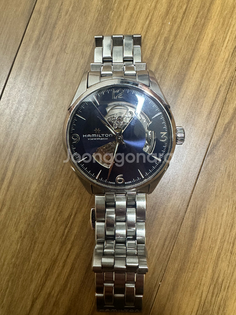 해밀턴 재즈마스터 오픈하트 시계 판매해요 청판 색상이고 오토매틱 시계예요 모델명은 H327050이고 시리얼 넘버는 KW5XR3ZKH예요 2020년 4월 8일에 구매했고 보증서 포함입니다. 박스, 여분 시계줄도 같이 드립니다. 생활기스는 있지만 작동 잘되고 상태 준수합니다. 직거래는 광명 인근 가능합니다. 중고거래 특성상 반품, 환불은 불가능합니다.