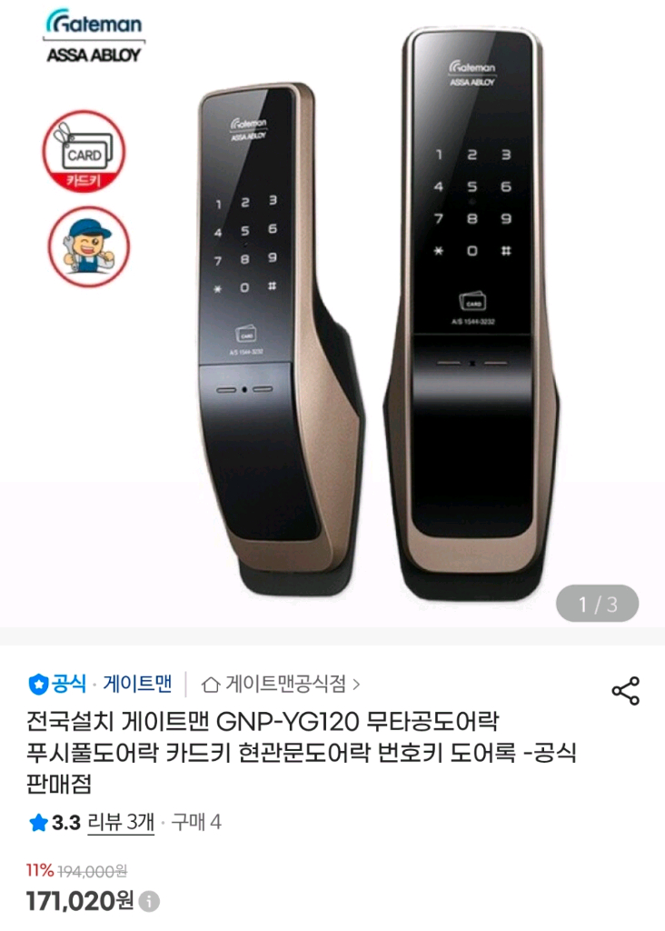 개인정보(거래정보)를 주고받는 행위는 사기에 노출될 수 있으므로 즉시 중고나라로 신고해 주세요푸시풀 디지털 도어락이에요. 박스와 구성품이 모두 포함되어 있고 상태 양호합니다. 카드키와 터치패드 기능 모두 사용 가능해요.
