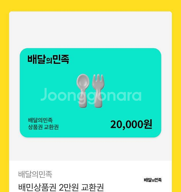 개인정보(거래정보)를 주고받는 행위는 사기에 노출될 수 있으므로 즉시 중고나라로 신고해 주세요배달앱에서 사용 가능한 2만원 상품권이에요. 유효기간 1년 남았습니다 두장있구 개당 18000원에 팔겠습니다