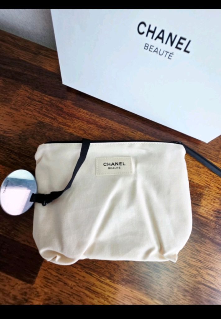 ☆탈부착 가능한 거울이달린 특이한 디자인 파우치 완전 새제품 제품박스까지 있는 새상품이며 구입시 샤넬리본끈달린 쇼핑백도 같이 드립니다 상세사진 있듯이 파우치 속을 보면 지퍼달린 속 파우치까지 내부에 있어서 속파우치를 기준으로 앞칸,뒷칸 구분이 되어있어 엄청 실용적입니다 그러니까 속 파우치까지 달려있으니 3칸 구성이라 보면 되구요 탈부착 가능한 거울도 앙증 맞게 달려 있어요 탈부착 거울에 새겨진 샤넬 로고도 고급 지구요 밑바닥 폭도 넓어서 사진처럼 세워서도 사용 가능 합니다 수납도 상당히 많이 된답니다 지퍼와 지퍼 손잡이도 엄청 세련된 디자인 입니다 세련된 검정컬러에 기다란 가죽손잡이 끈이 달려있는 멋스런 디자인요 거울 앞면 뒷면 길다란 가죽손잡이끈 지퍼고리 모든곳에 섬세하게 샤넬마크 다 새겨져 있어서 실물이 훨씬더 고급스러워요 소재는 탄탄한 면소재로 세련된 컬러이며 오염에도 강한 컬러감과 원단소재감 입니다 흐물거리지 않는 탄탄한 광목원단같은 샤넬으런 소재감 입니다