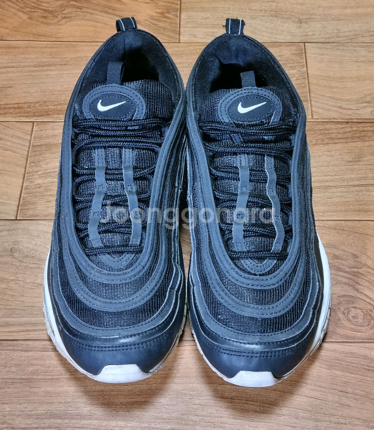 나이키 에어맥스 97 운동화 921826-101입니다. 사이즈는 285mm입니다 색상은 블랙입니다 전체적으로 사용감이 있으나 제품상태 좋습니다 이 신발은 921826-101 모델로, 2022년 12월 14일에 생산되어 2023년 2월 2일에 출시된 제품입니다 전장 맥스 에어 유닛이 발 전체에 편안함을 제공하며, 물결 모양의 디자인이 스타일리시한 매력을 더해줍니다