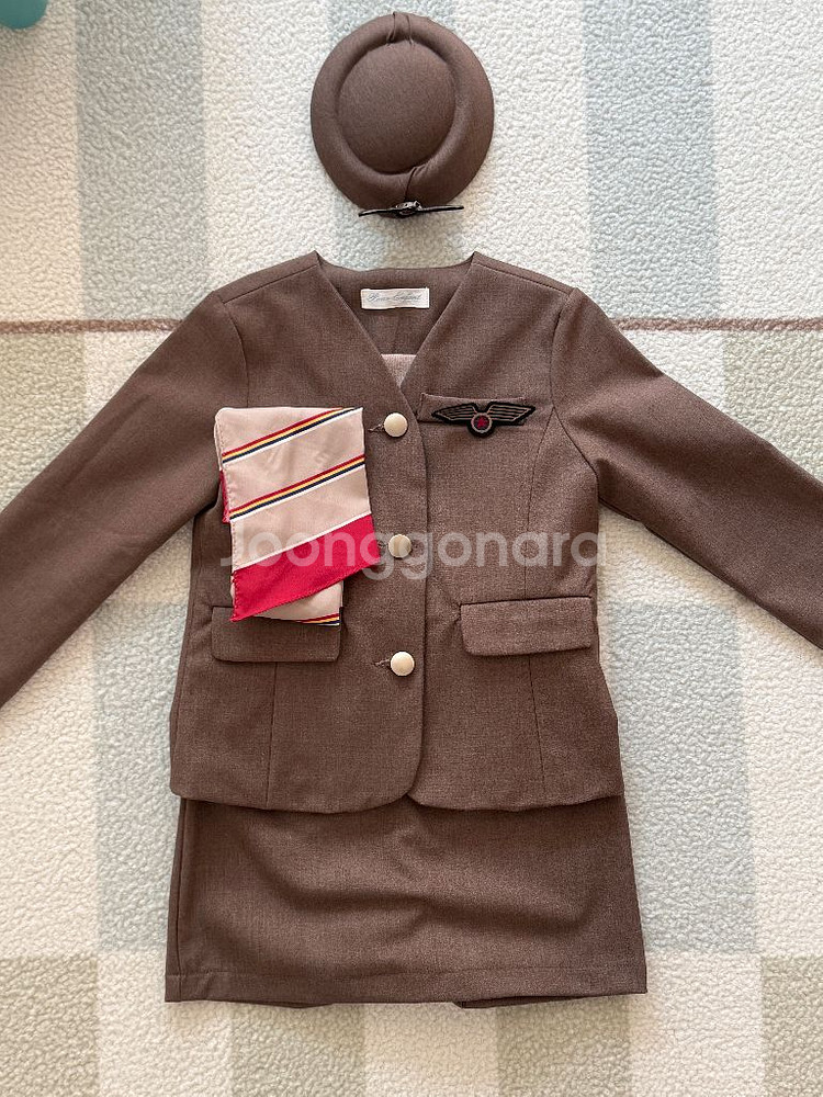 뿌르앙빠 유아 승무원복 세트 판매 지금은 단종된 상품이라 더 귀한 아이예요. ✔ 사이즈: L ✔ 구성: 자켓 + 스카프 + 모자 ✔ 상태: 매우 깨끗 (스타일러 돌려놈) ✔ 참고 - 모자 마크는 떨어져 옷핀으로 고정해둔 상태 (착용 문제 없음, 접착제로 부착가능) ✔ 거래 - 직거래 / 택배 가능 - 중고 특성상 교환/환불 불가