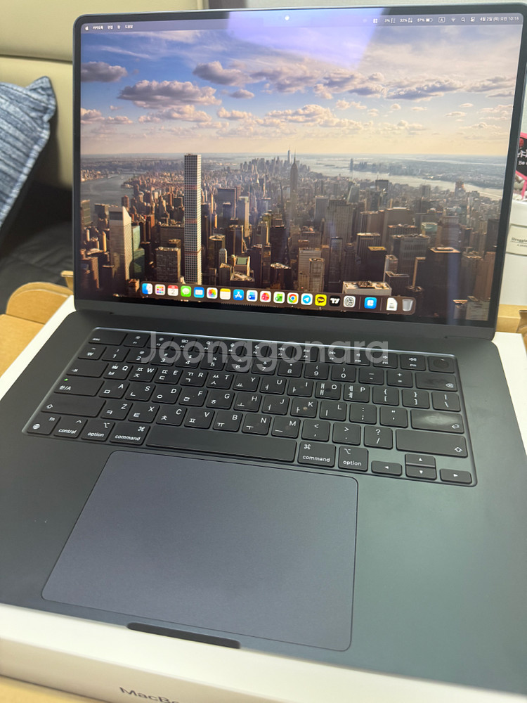 개인정보(거래정보)를 주고받는 행위는 사기에 노출될 수 있으므로 즉시 중고나라로 신고해 주세요맥북에어 15 m3 판매합니다. 색상은 미드나이트이며 메모리 8GB 기본 모델 입니다. 구매했을 당시 풀박스 보요중이며, 컨디션 역시 매우 좋습니다. 배터리 웨어율은 100%로 유지하고 있으며 기스나 흠집 없습니다.