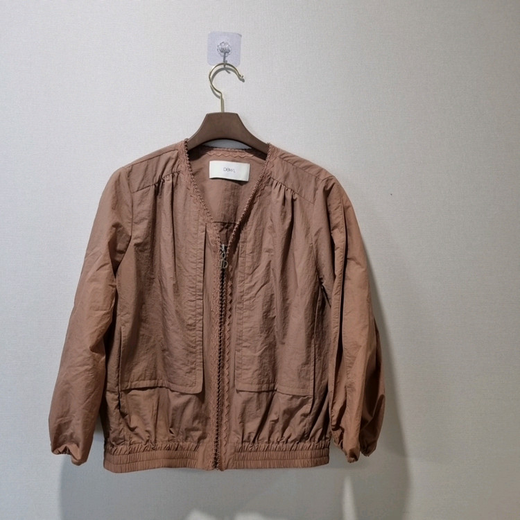 듀엘(DEWL) 레이스 디테일 집업 블라우스 자켓이에요 은은한 브라운톤 컬러로 고급스럽고 여성스러운 느낌입니다. 앞라인 레이스 디테일과 로고 지퍼 포인트로 단품으로도 포인트 주기 좋아요 허리 밴딩 들어가 있어 핏 예쁘게 잡히고 가볍고 바스락한 소재라 간절기 아우터로 활용도 좋아요 사이즈 66 55-66가능 가단 51 / 총장 53 큰 하자 없이 상태 좋습니다. 😊